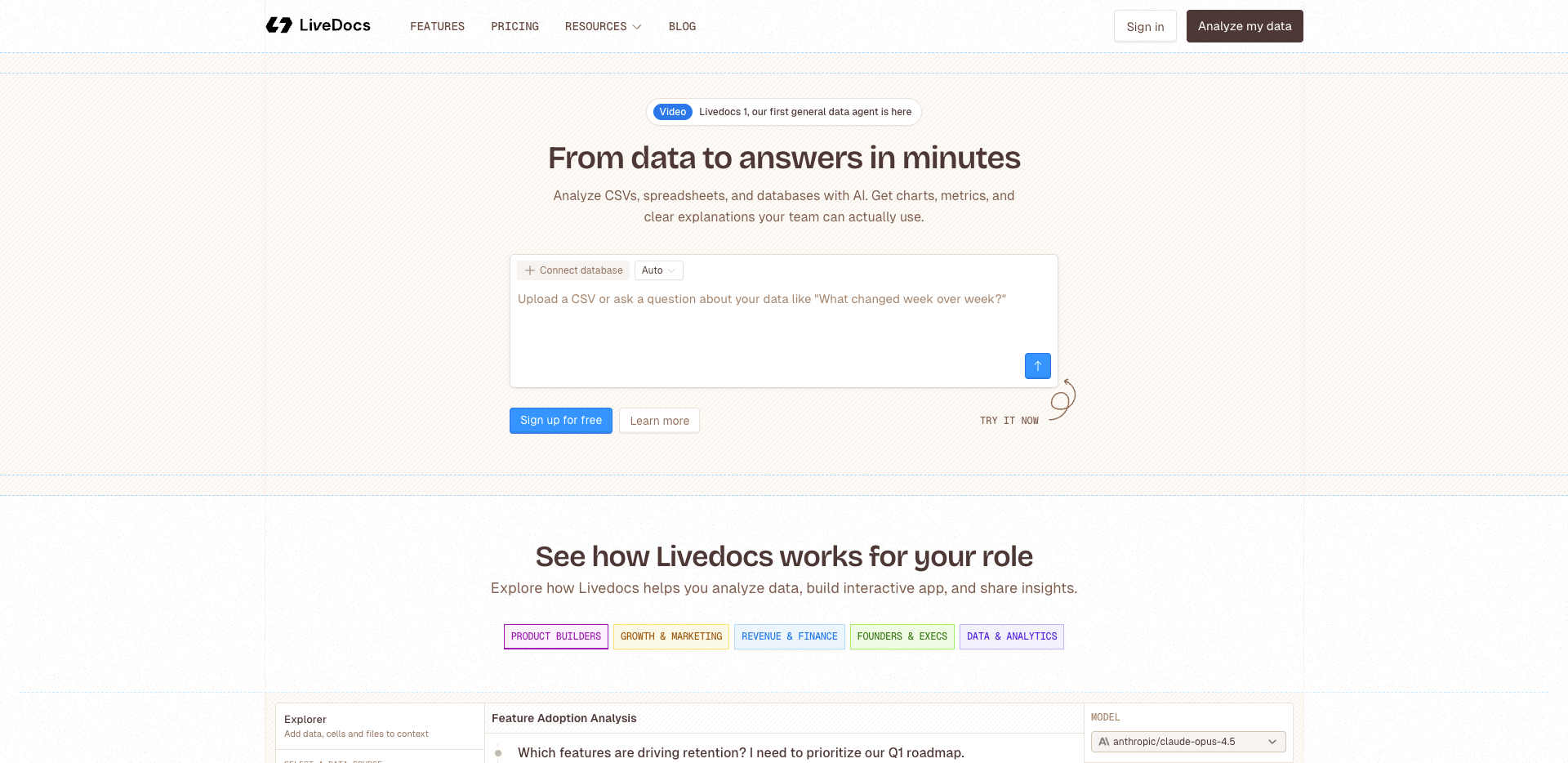 Livedocs is different. It is a no-code, AI-driven analytics platform. You can ask questions in plain English. You do not need to learn hard software. Just upload your data and type your question. You get answers right away. Livedocs makes analytics easy for everyone, not just experts.